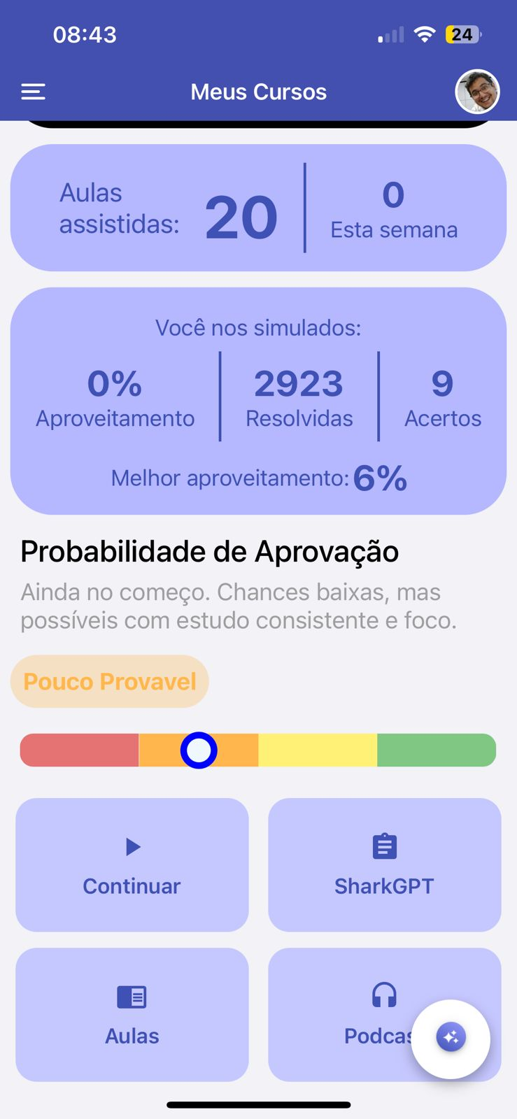 Fala Shark! Criamos apps exclusivos e nativos de todas as plataformas para que você consiga acessar suas aulas, resolver questões e utilizar o SharkGPT, nossa IA exclusiva.